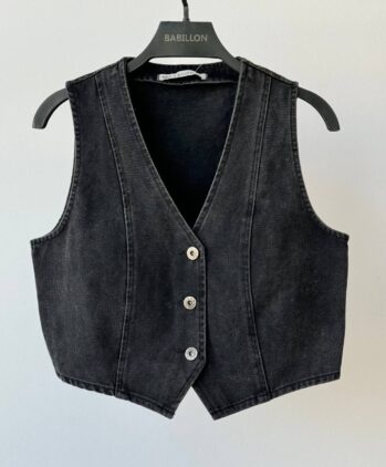 جلیقه جین زنانه ذغالی کد ۰۶۰۲۰