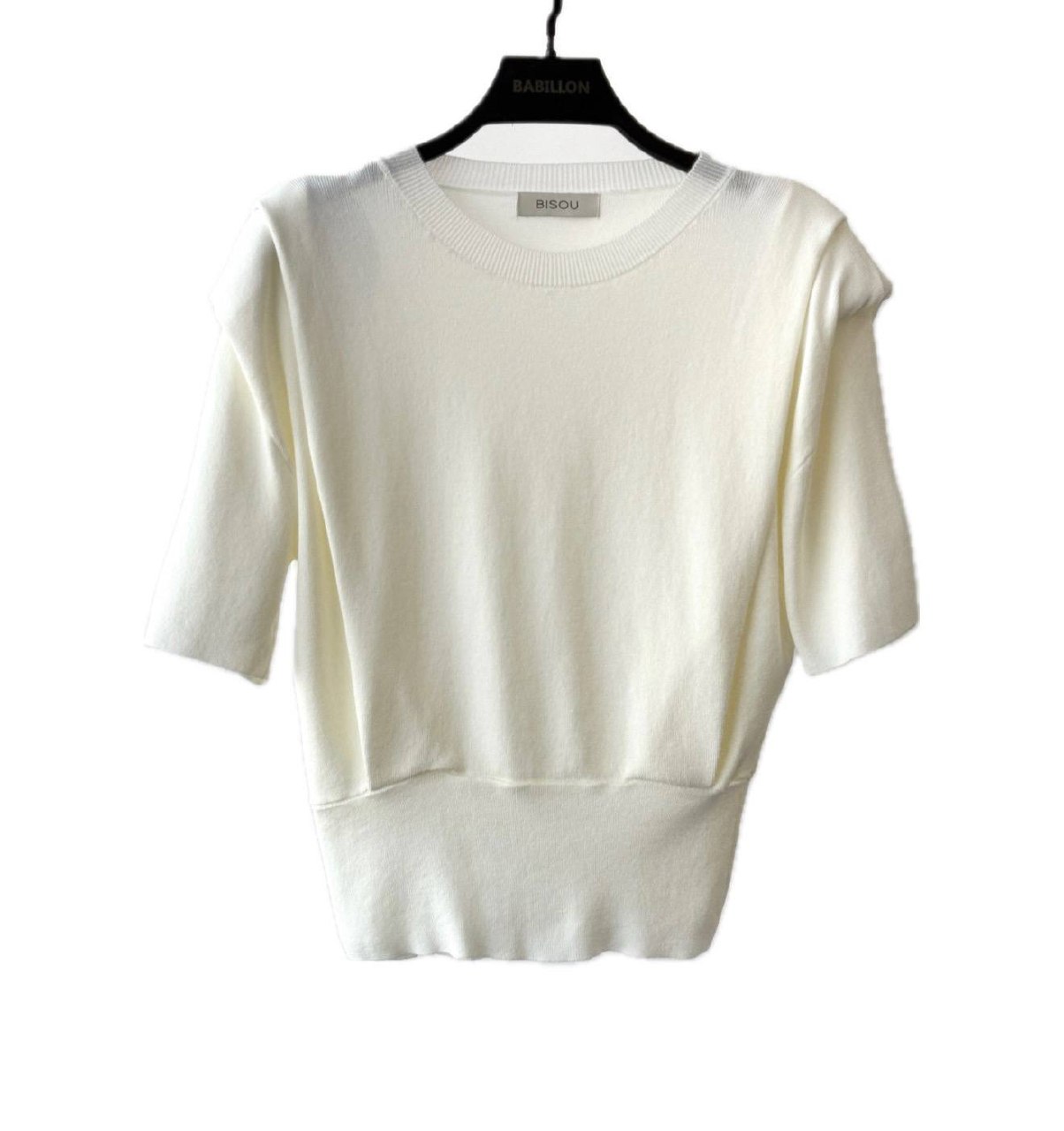 تیشرت بافت نازک اپل دار شیری کد ۰۸۹۷۱
