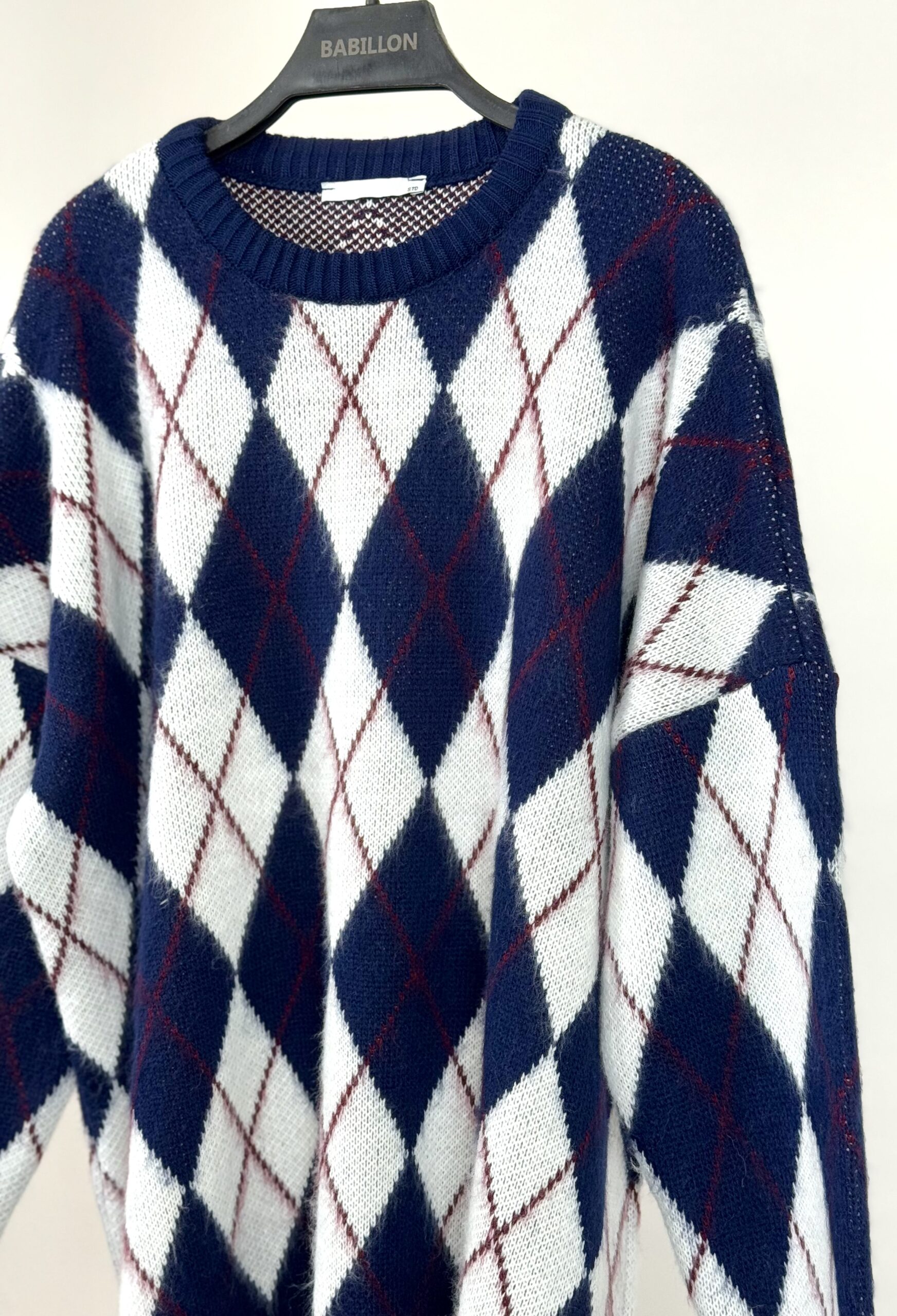 بافت لوزی زنانه سفید سورمه ای فری سایز کد ۰۹۰۰۹