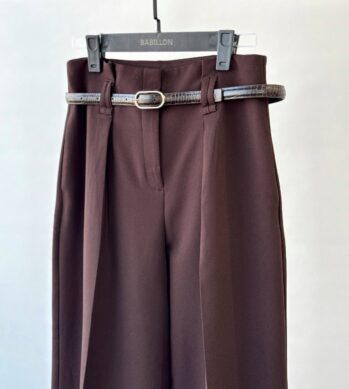 شلوار زنانه پارچه ای کمربند دار قهوه ای کد ۰۸۷۸۶