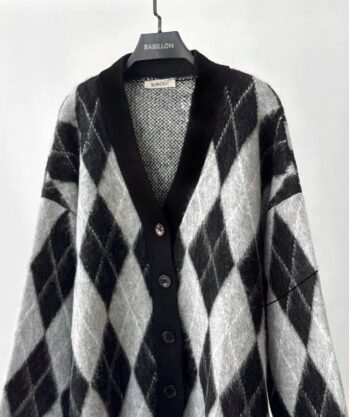 ژاکت بافت لوزی زنانه مشکی و طوسی فری سایز کد ۰۸۸۳۷